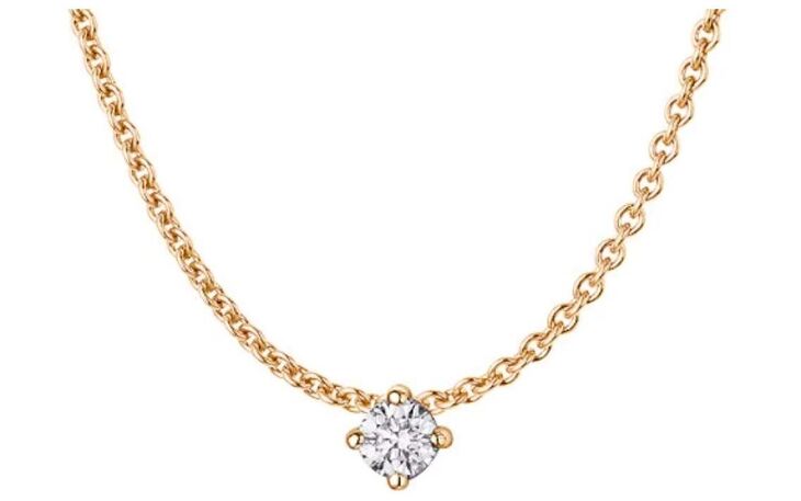 Halsschmuck aus 585/- Roségold, poliert, mit 1 Brillant 0,150 ct TW(G) si in 4-er Krappenfassung, Ankerkette mit Karabinerverschluss 42,0 bis 45,0 cm lang