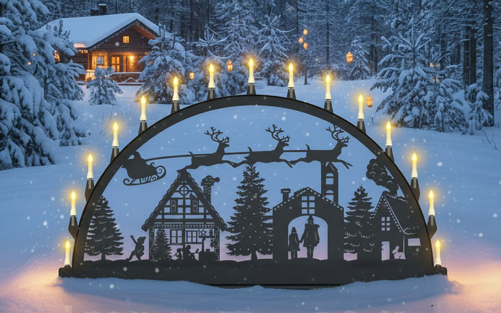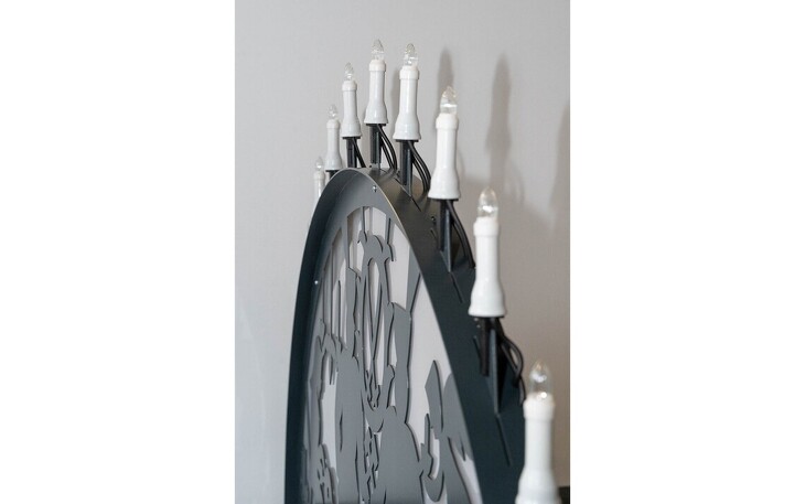 Er ist mit einer 15-Kerzen-Lichterkette für den Außenbereich ausgestattet, die CE-geprüft und IP44-spritzwassergeschützt ist. Ein besonderes Highlight ist die Möglichkeit einer freien Motivwahl, die es Ihnen erlaubt, den Schwibbogen nach Ihren Wünschen zu gestalten. Erdspieße für die Montage im Erdreich sind ebenfalls im Lieferumfang enthalten. Dieses einzigartige Stück ist zur Abholung bereit und wird Ihrer Außendekoration eine besondere Note verleihen!