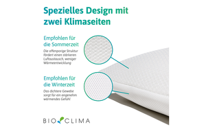 Ein Klimapolster fördert die freie Luftzirkulation, so dass Feuchtigkeit effektiv entweichen kann und Milben keinen Nährboden finden. Mit dieser natürlichen Belüftungs- und Klimafunktion ist das BioKlima-Kissen auch bestens für Allergiker geeignet.