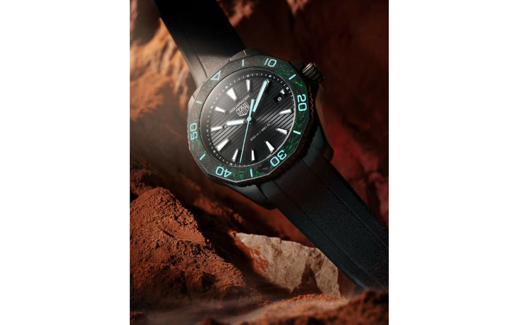 Das spezielle Zifferblatt der TAG Heuer Aquaracer Solargraph ist teilweise transparent, so dass das Uhrwerk durch die Sonnenstrahlen aufgeladen werden kann. Nur 2 Minuten Sonnenlicht geben genug Energie für einen Tag Laufleistung.
