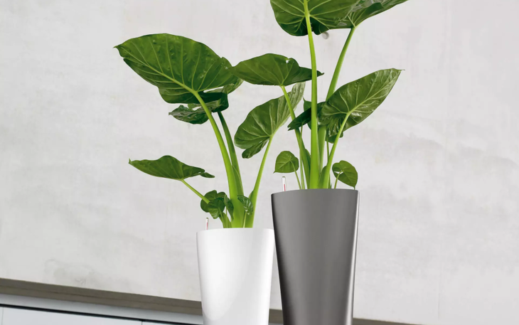 Mit ihrer ausgefallenen Form setzt die schmale Säule DELTA 40 elegant grüne Akzente. Im Wohnraum oder auch im Office bietet die fließende Gefäßform mit abgerundeten Ecken einen hochwertigen Rahmen für exquisite Pflanzenarrangements.